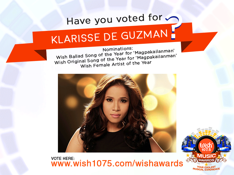Another thing you should not miss about Klarisse is her hit single “Magpakailanman”. It has also been nominated as Wish Ballad Song and Wish Original Song in the upcoming Wish 107.5 Music Awards. Klarisse is up for the category Wish Female Artist of the Year. Vote for her here. Polling period ends on 12 noon on the same day of the WMA on January 26, 2016 at the SMART Araneta Coliseum.